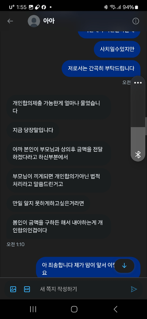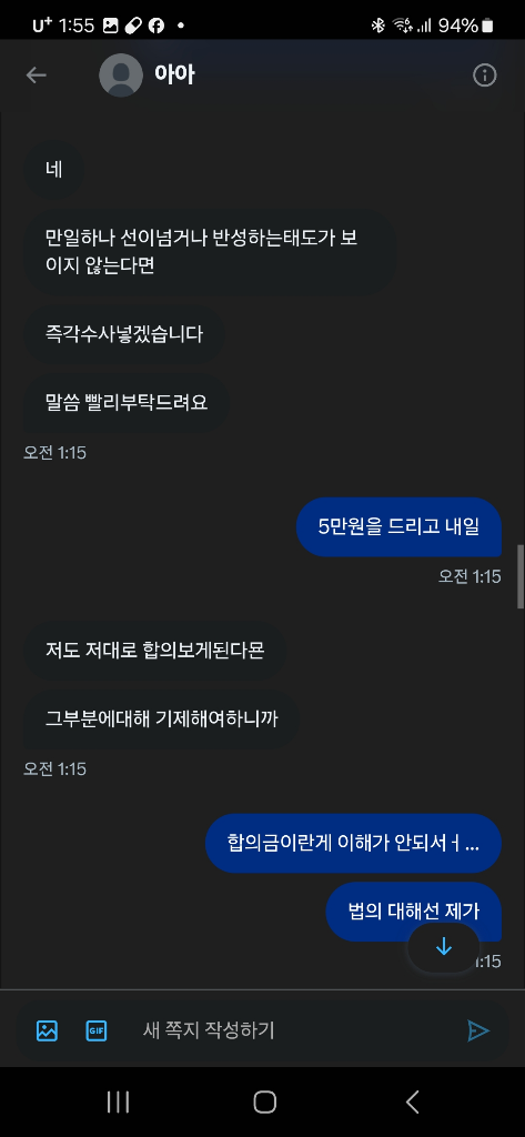 위의 경우 합의를 공갈하는 공갈범죄에 해당할 여지가 있어 보이고 더이상 응하지 않을 것이 필요해보입니다. 고소 여부는 실익이 그리 커보이지는 않습니다.