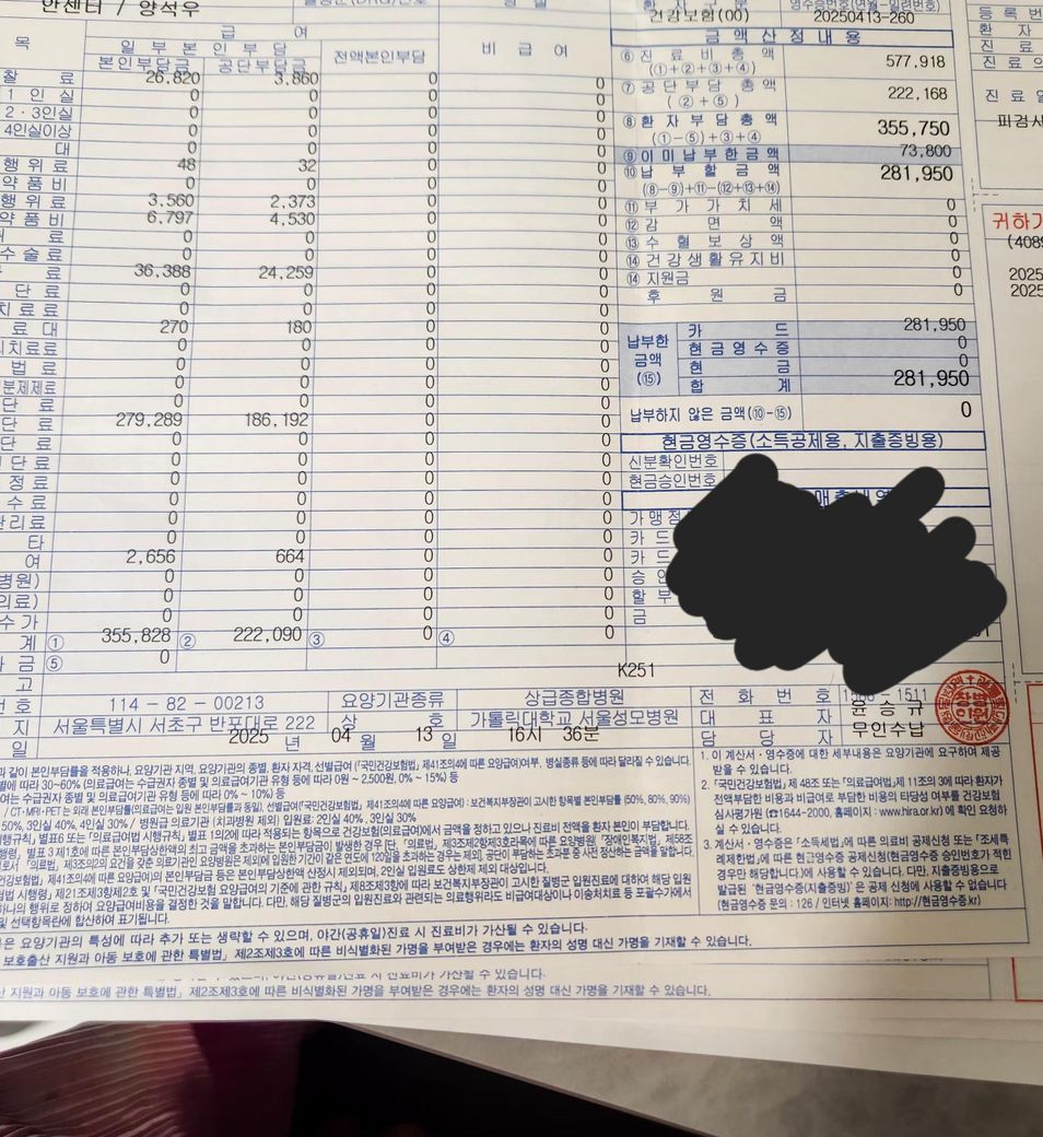 또한 병원에서 청구한 금액과 보험사에서 인정하는 금액이 다를 수도 있으니 보험사 고객센터에 문의하거나 상세 내역을 다시 확인하는 게 가장 정확합니다.