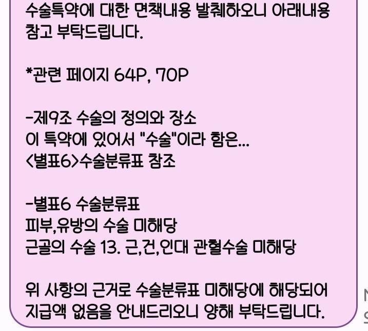 근육층이 아닌 단순 피부절제술이라 종수술에 미해당 된다며 거절을 당했습니다. 보험가입은 2008년7월에 새마음금고에 가입되었고, 약관을 봤을땐 종수술에 관한 내용이 없다라고 말하니. 거절을 하셔서.