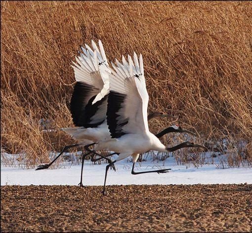 두루미는 긴 목과 다리에 뾰족한 부리와 편평한 발바닥을 가졌지만 날개가 작고 큰 몸이 무거워서 바람이 불 때만 높이 날지 나머지 시간은 호수나 늪처럼 얕은 물과 풍부한 흙, 부드러운 풀이 많은 습지대에 살지만 추울 때 우리나라로 날아오고요.