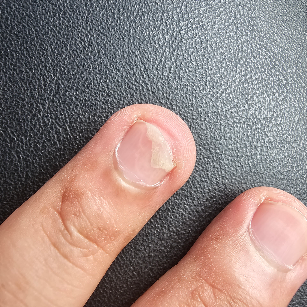 손톱이 들리는 원인으로 진균 감염의 가능성이 있어보입니다. 가까운 피부과를 내원해 진찰받아보시는 것이 좋겠습니다.