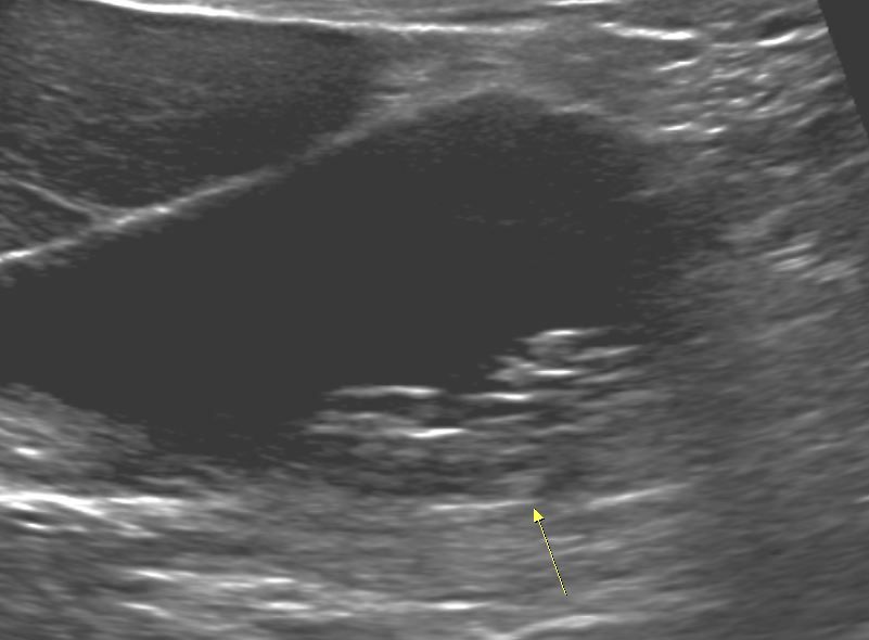 초음파 사진을 두 장만 봐서는 판단이 어렵긴 합니다만, 체위 변경에 따른 움직임을 실시간으로 확인했다면 작은 돌이나 슬러지일 가능성이 높습니다.
