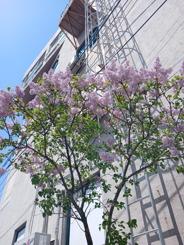 한그루씩 있을정도로 꽃이예쁩니다 아래꽃은 수수꽃다리꽃 입니다 연한 자주색으로 4-5월에 피고 향기가 있으며 라일라과 비슷하지만 꽃받침과 꽃부리가