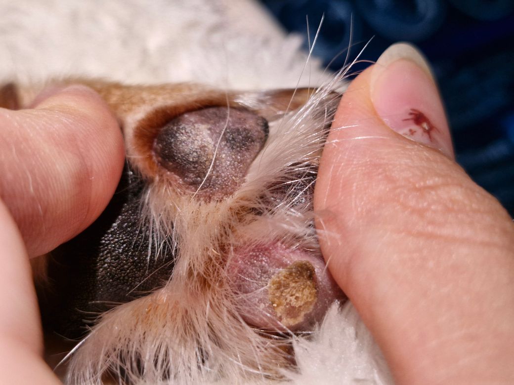 안녕하세요. 박창민 수의사입니다. 일단 사진으로 판단이 불가하지만, 발바닥이 매우 건조해 보이고 약긴의 각질화도 있는 거 같습니다. 동물 병원에 한 번 가보시는 게 좋을 거 같습니다. 감사합니다.