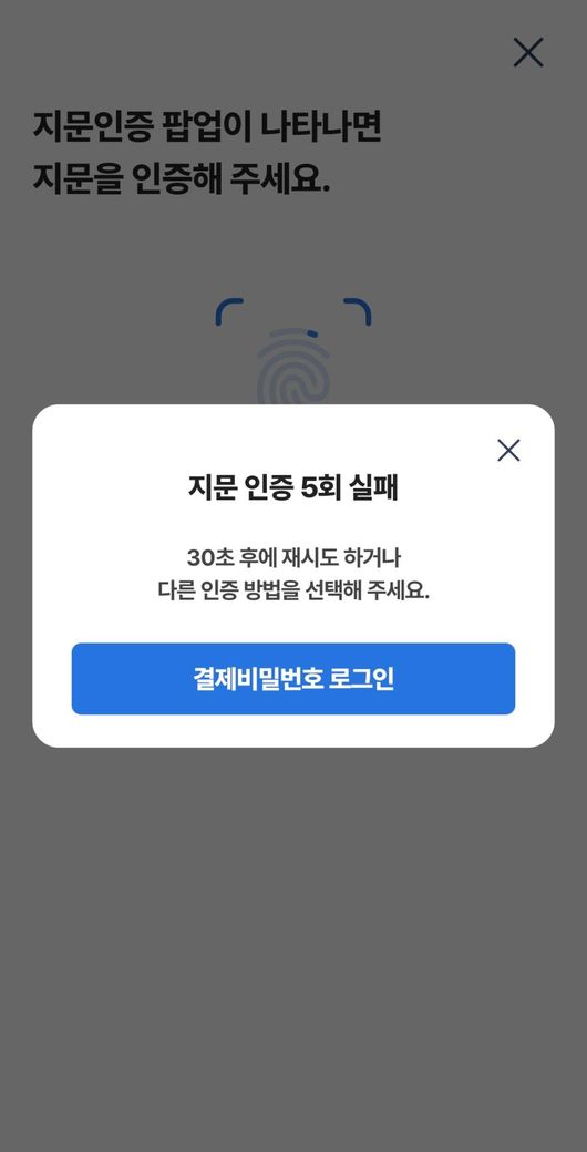 지문인증 5회 실패 했는데 어떻게 하나요..