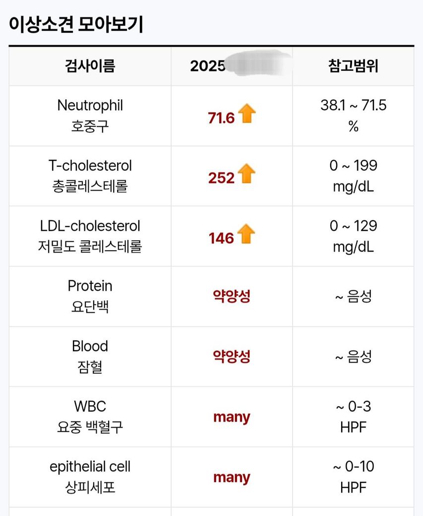소변검사에서도 여러항목에서 이상이 나오니 걱정이됩니다.
