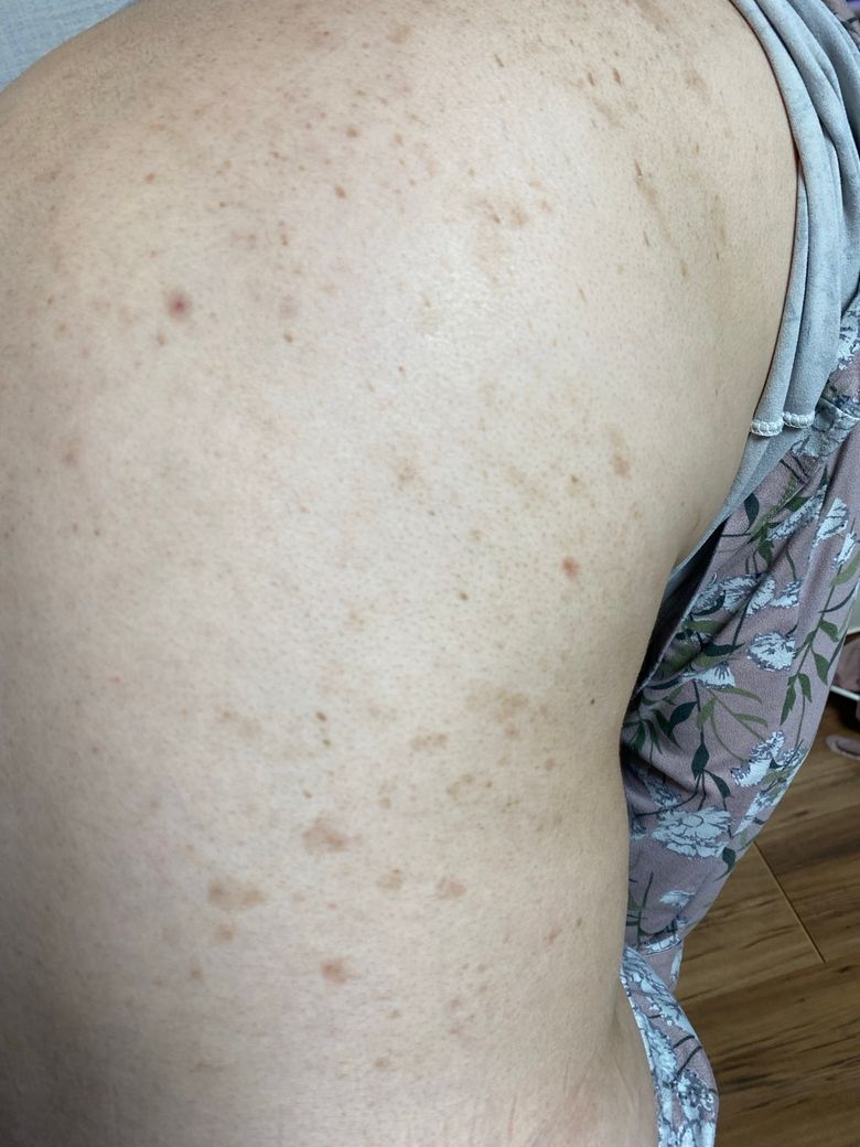 여러 원인이 있을 수 있습니다. 곰팡이 감염인 백선일 가능성도 있어요. 백선은 피부에 갈색 또는 하얀색 반점이 생기며, 가려움과 함께 퍼질 수 있는 특징이 있습니다. 이 외에도 여드름, 아토피 피부염, 피부염 등 다른 피부 문제일 수도 있습니다. 만약 증상이 지속되거나 퍼진다면, 정확한 진단을 위해 피부과에 방문하여 검사를 받는 것이 좋습니다.