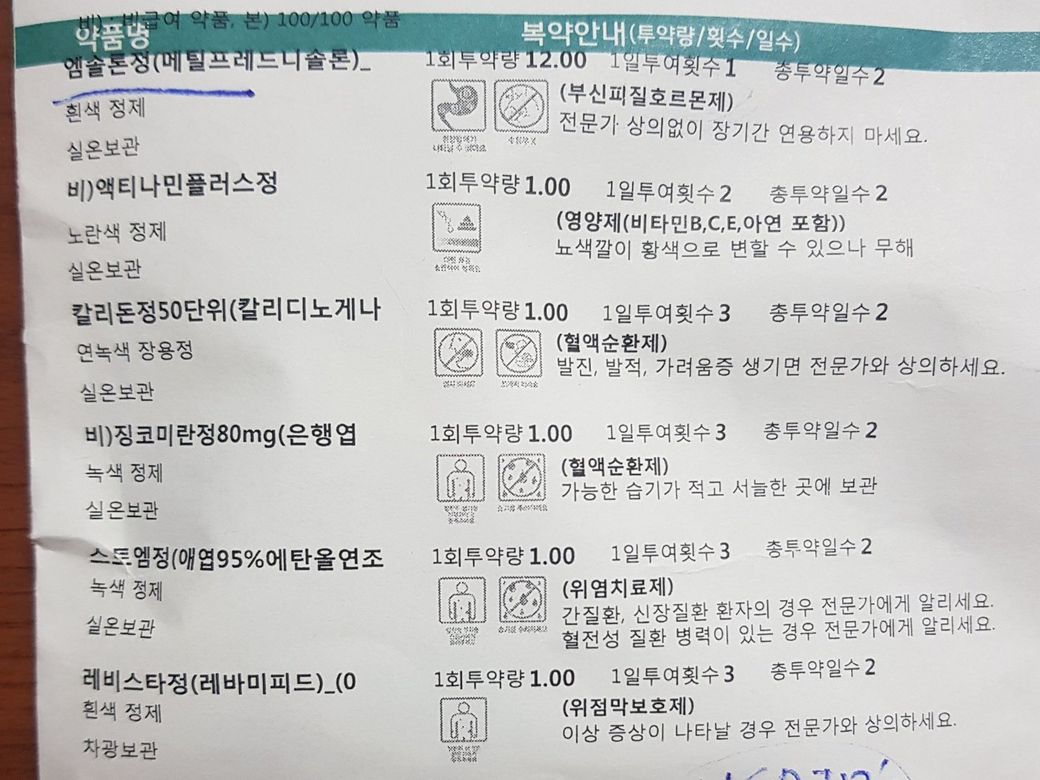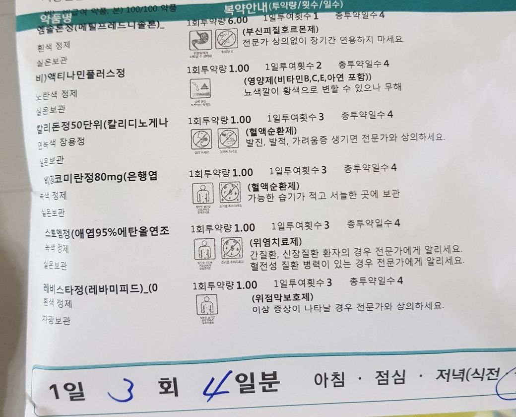 두번째 검사때 정상으로 다 나왔는데 약을 또 4일분주네요 그 스테로이드약만 2분에 1로 쭐여서