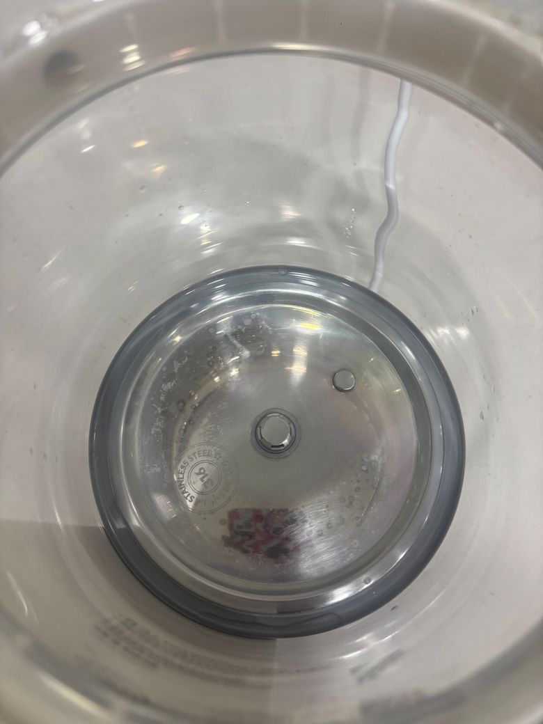 무지개 자국은 스테인리스 소재 특성상 완전히 없어지기 어려운 부분이라고 봅니다 식초로 끓이셨어도 오랫동안 사용하신 흔적들은 남아있게 되는데 이건 위생상 문제는 없다고 보시면 됩니다 그리고 말씀하신 표시한 부분이 어떤 부분인지 정확히 알기는 어렵지만 외관상 변색이나 얼룩정도라면 내부 작동에는 지장없을거라 생각됩니다 다만 전기제품이니까 안전을 위해서 전원 연결부분이나 코드부분은 한번 더 체크해보시는게 좋겠습니다.