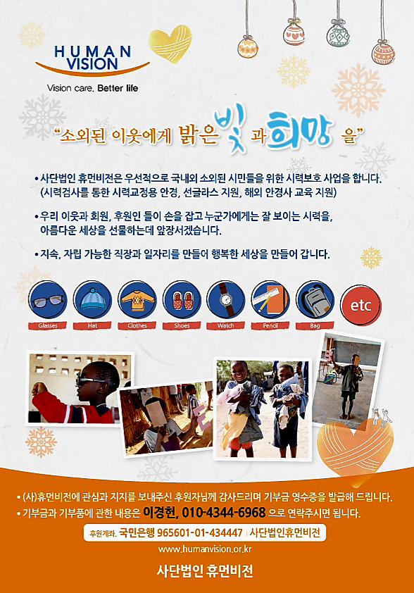 화성시 향남읍 삼천병마로 191. 드라마안경 발안점 사단법인 휴먼비전으로 보내주시면 됩니다.