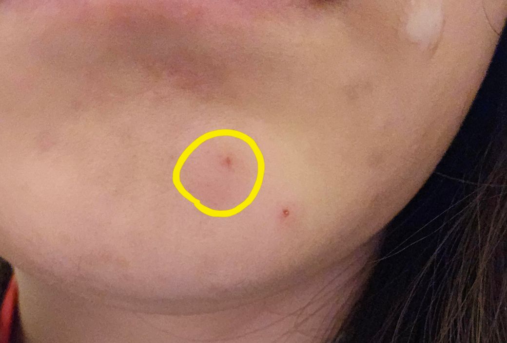 오늘 아침에 세수하고 보니까 턱에 멍울 난거같고 누르면 아프진 않아요.
