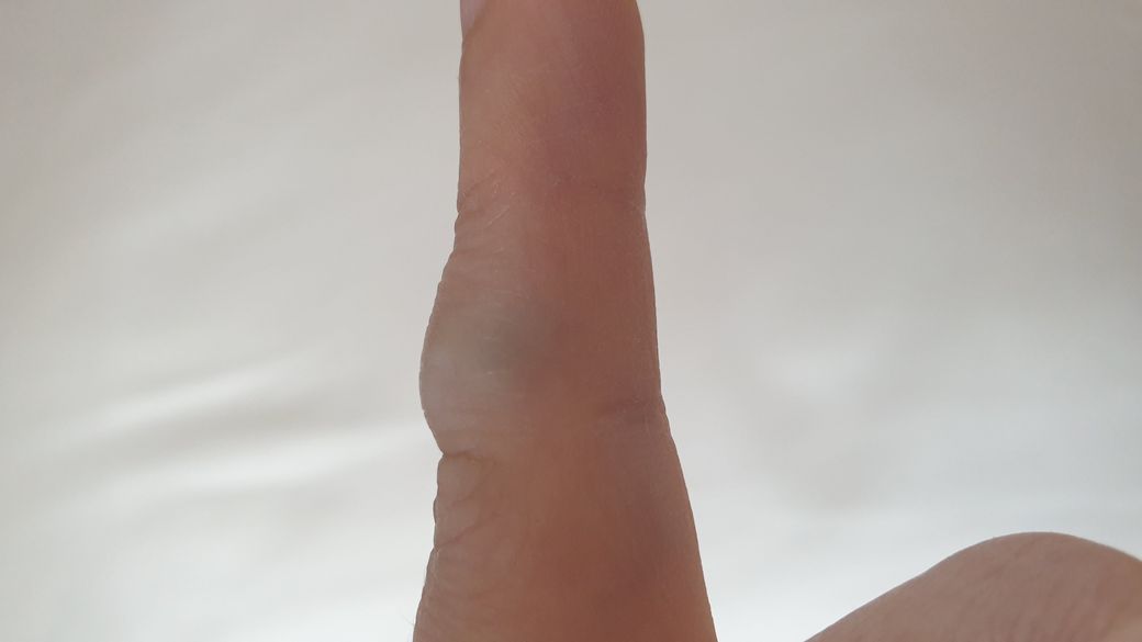 손가락에 이전에 다친 이후에 혈종이 생긴 후 굳었을 가능성이 높습니다.