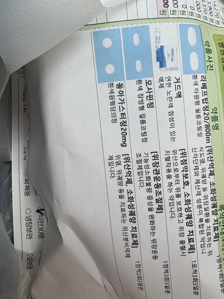 에소메졸, 가스티인, 레바큐어, 가스터디정, 거드액은 모두 식전에 함께 복용 가능하며 상호작용 문제는 없습니다. 위 점막 보호 및 위산 조절에 사용하는 약 조합이므로 복용 순서는 크게 중요하지 않습니다. 위경련약(예: 부스코판 등)을 추가로 복용하는 것도 대부분의 경우 가능하지만, 위장운동 관련 약이 이미 포함되어 있어 과도한 자극을 피하기 위해 일시적으로만 복용하시는 것이 좋습니다. 복용 전 정확한 성분 확인을 권장드립니다.