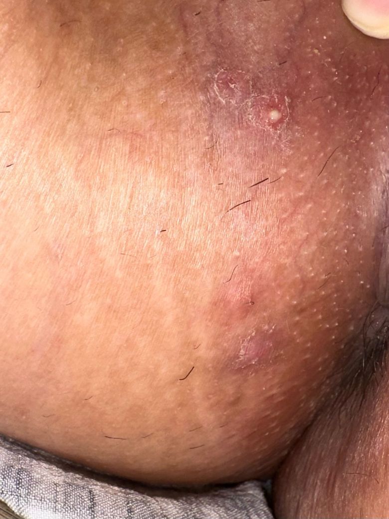 제가 보기에는 모낭염이나 뾰루지같긴 한데 성병인 가능성이 있을까요??? 아프거나 소변 볼때 통증은 없습니다.