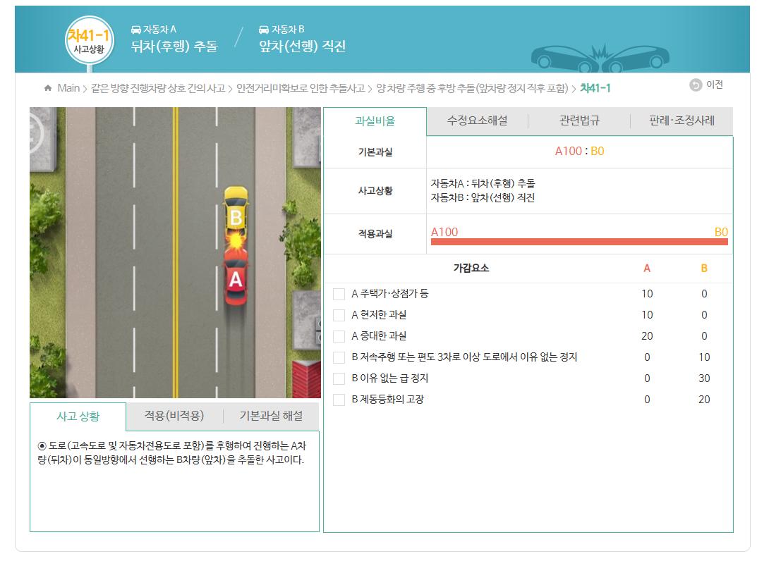 자동차 사고에 있어 과실산정은 교통사고 과실도표 및 판례에 의하며