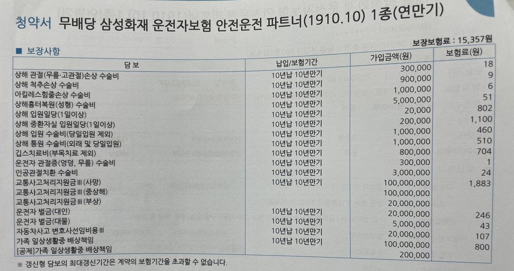 작년에 들은 삼성화재 운전자 보험인데, 보완할 사항이 있을까요?