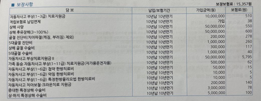 * 위에 제가 표시한거 외에 다른 보장들은 다 다쳐서(상해)
