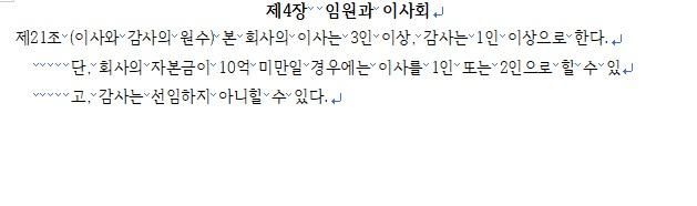 정관 찾아서 임원과 이사회 부분 발췌해서 올립니다.