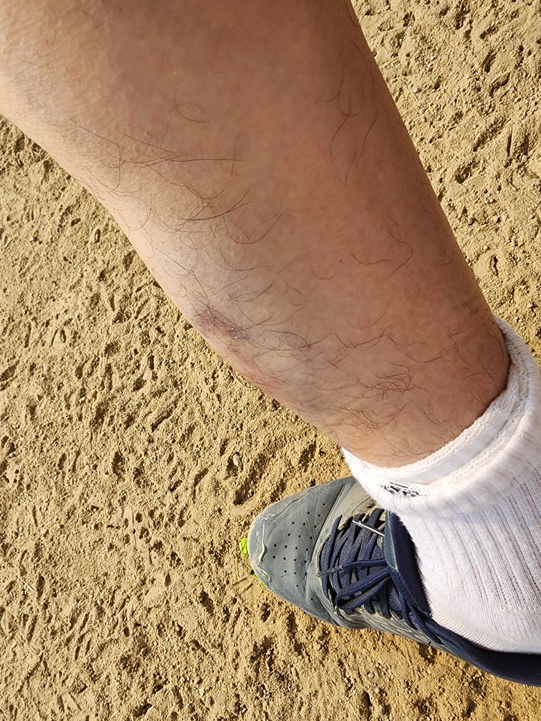 빠르게 날아오는 야구공에 발목쪽을 맞아서