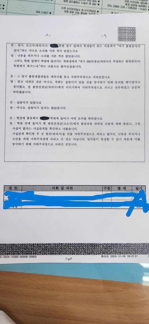 고소인 조사 시, 2023년 6월 16일 당시 피고소인 학원에 불법강사가 실제