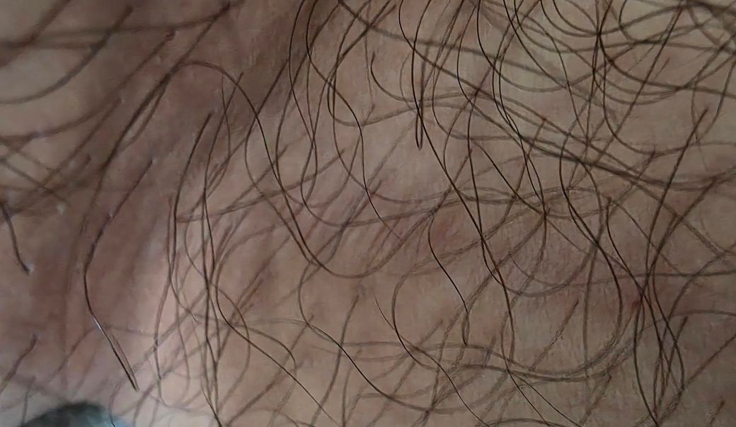 사타구니와 다리가 접히는 부분에 검고 길게 이어진 무늬가 생겼습니다