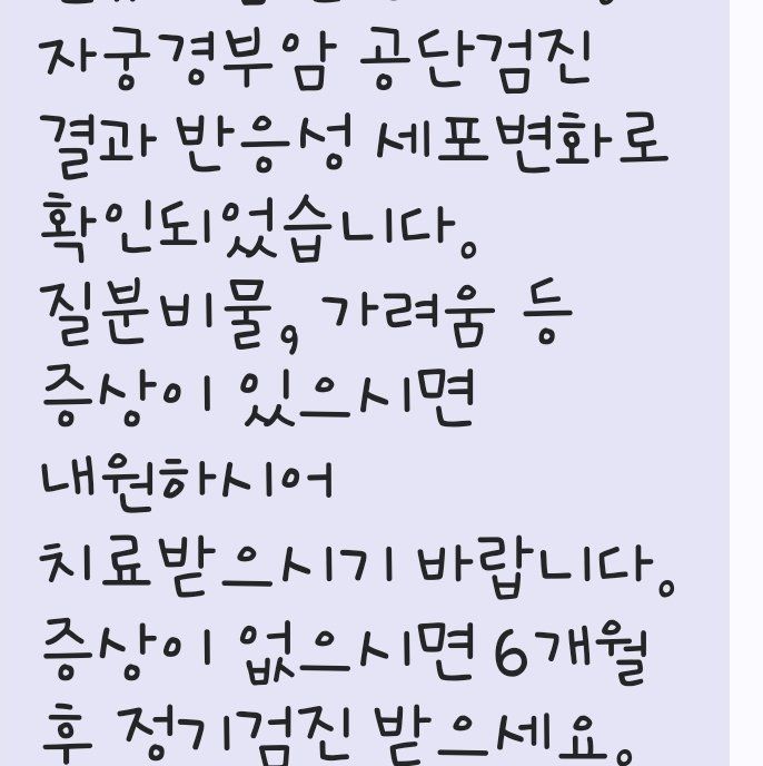 자궁경부암 건강검진 받고나서 문자온내용이