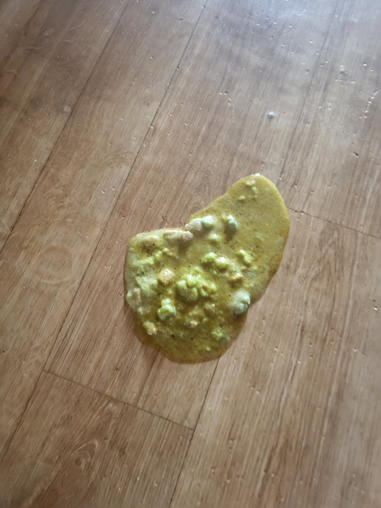 간식을 많이먹은 상태로 안아 올릴때 위가눌려서 소화 안된 녹색 간식때문에 녹색토가 나온걸가요?