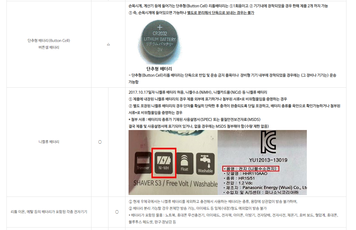 EMS로 보내시고자 하는 경우 현재 우체국에서는 니켈류 배터리를 제외하고 충전해서 사용하는 배터리는 종류, 용량에 상관없이 발송 불가하며, 배터리 분리 가능할 경우 본체만 발송 가능, 아이패드 등 일체(내장)형도 예외없이 발송 불가합니다.