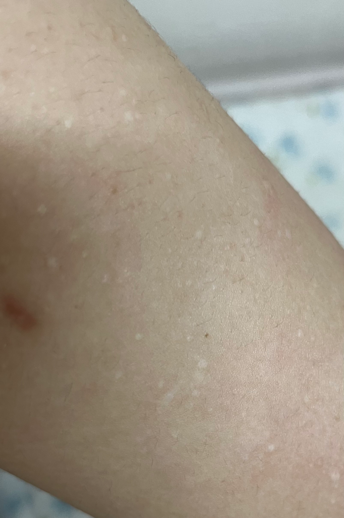피부에 겉면에 요런 게 생긴 지 10년이 지났는데 안 없어져요.. 만져보면 튀어나와있고 가끔 간지럽고 평소보다 부풀기도 하고 하얀색, 빨간색이에요! 그리고 그 주변으로 하얀색 점 같은 것들이 엄청 많아요.. 혹시 아시는 분 있으면 알려주세요ㅠㅠ (팔에만 있어요!)