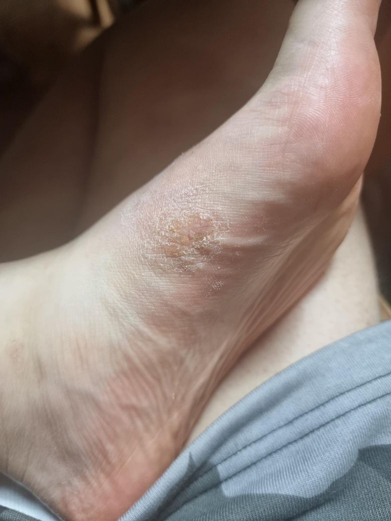 사진으로 볼때는 무좀 혹은 한포진 가능성이 있어보입니다. 근처 피부과 진료를 보는것이 좋겠습니다. 긁으면 상처나고 그로인한 이차감염이 발생할수있으므로 너무 긁지마시고 진료를 한번 보세요