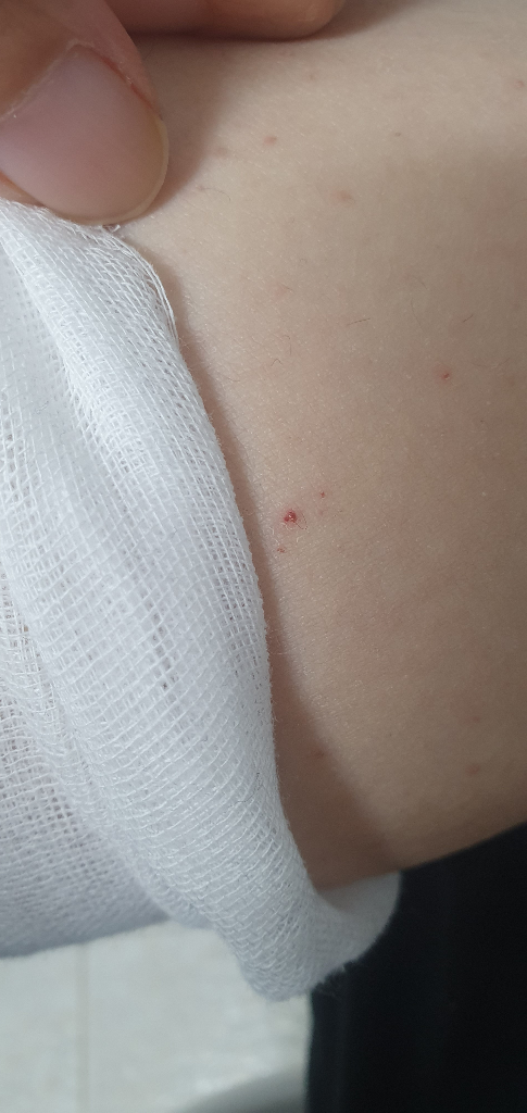 거즈를 까보니까..ㄷㄷ 빨개지고 마치 피가좀난듯? 하면서 모양도 좀 징그럽더라구요..ㅜㅜㅜ