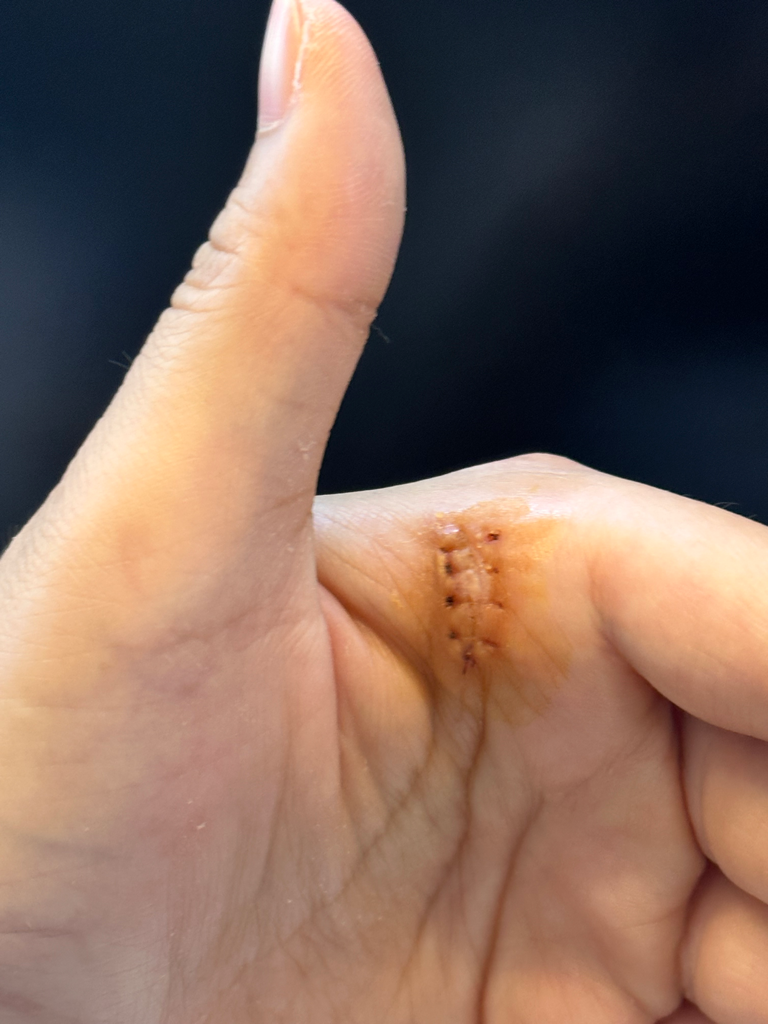 13일 정도면 충분히 상처는 봉합된 상태라고 판단합니다. 아마 각질층이 약간 벌어지고 그 아래쪽 피부는 벌어지지 않을 거에요. 만약 살 안쪽도 벌어진다면 당분간은 밴드 같은 것으로 덮어 주시고 손가락은 무리해서 펴지 않는 것이 좋습니다.