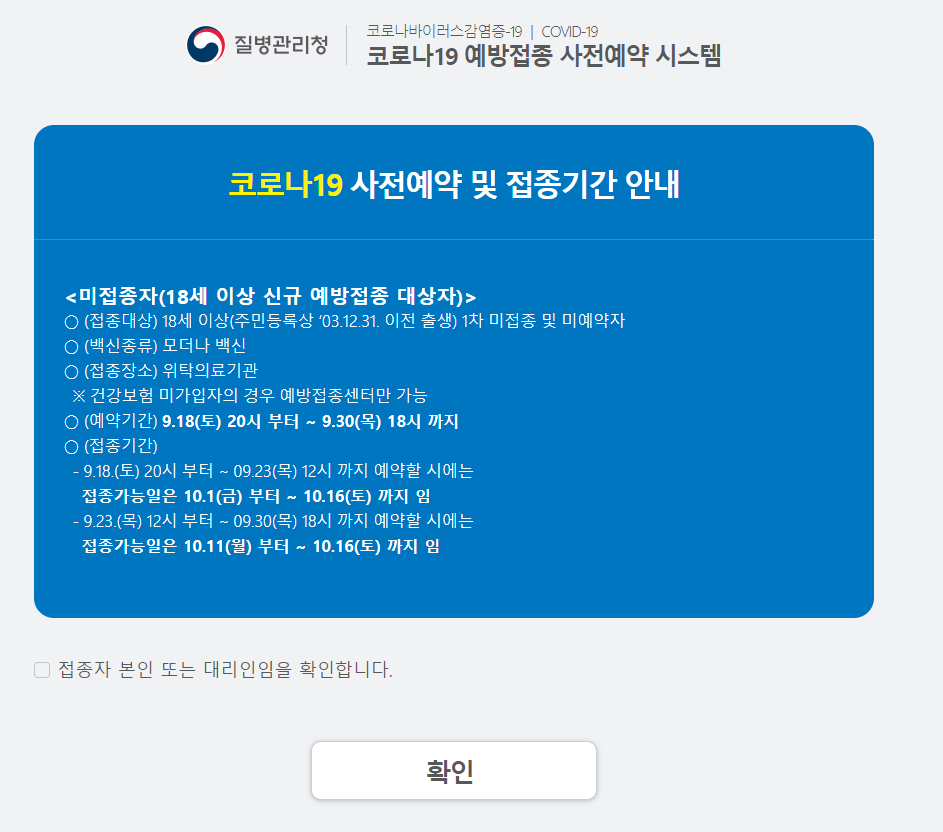 질문하신 내용에 대하여 아래와 같이 답변 드립니다.코로나 백신의 경우 20대는 사전예약기간에 직접 신청을 해야 합니다.