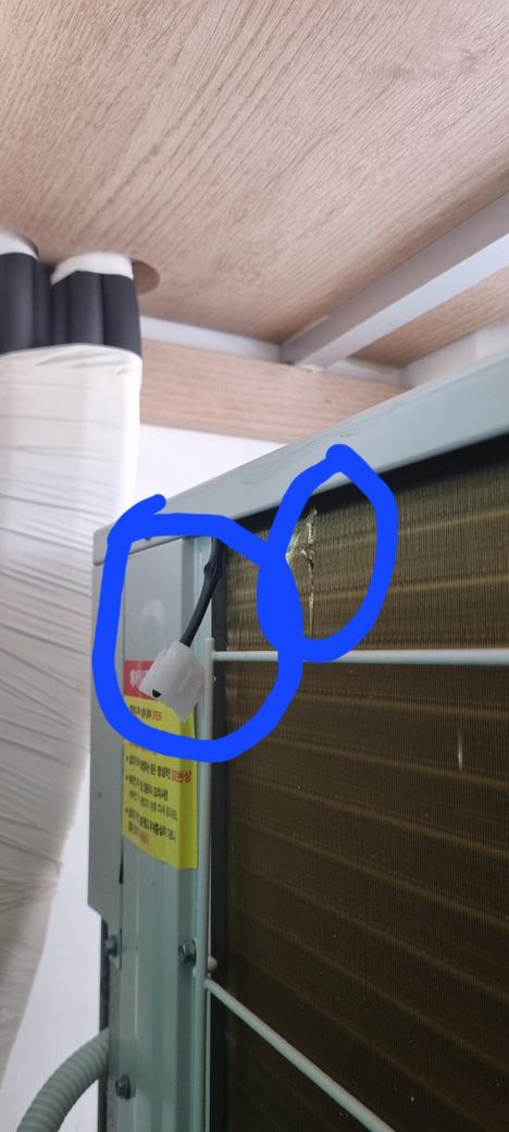 안녕하세요 에어콘실외기 질문입니다.5년동안 한번도 못본거 같은데 사진처럼 저렇게 선이 튀어나와 있는게 원래 마감이 저렇게 된건지 문제가 있는건지 잘 몰라서요..그리고 어딘가에
