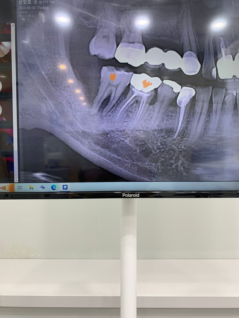 추가적으로 전반적으로 잇몸뼈 상태가 좋지는 않습니다. 만성적으로 잇몸질환(치주염)을 가지고 계실 확률이 높은데 이 기회에 잇몸치료도 같이 받으시는 걸 추천드립니다.