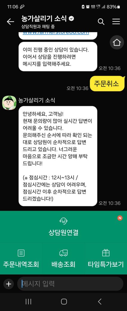 과일 주문한지 시간이 지났는데도 연락도 없고 택배도 안오는데 주문취소를 하려니 상담사가 전화도 안받아요