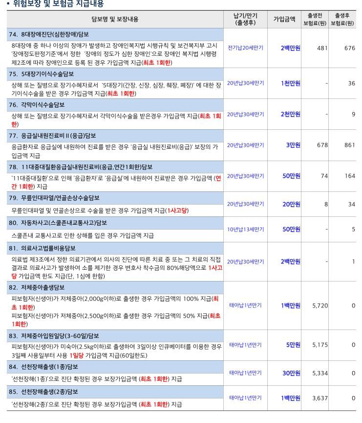 선천적위주로 셋팅하고, 나머지는 5세, 10세만기 이런 특약들,