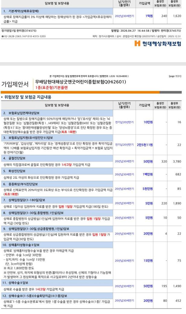 잘 설계된 부분은 일반암진단 1억원으로 충분히 높게 설정되어 있고, 재진단암·유사암·다발성소아암까지 포함되어 있으며, 뇌혈관·심혈관 진단담보도 구성되어 있고 항암방사선·항암약물치료비가 각 5백만원씩 포함된 점입니다.