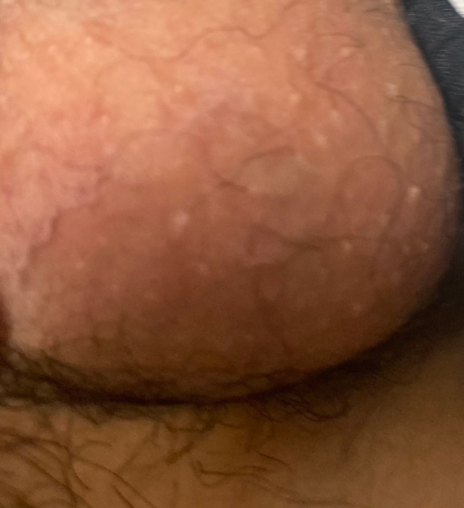 고환에 사진과 같이 모공이나 피지샘들이 올라왔어요