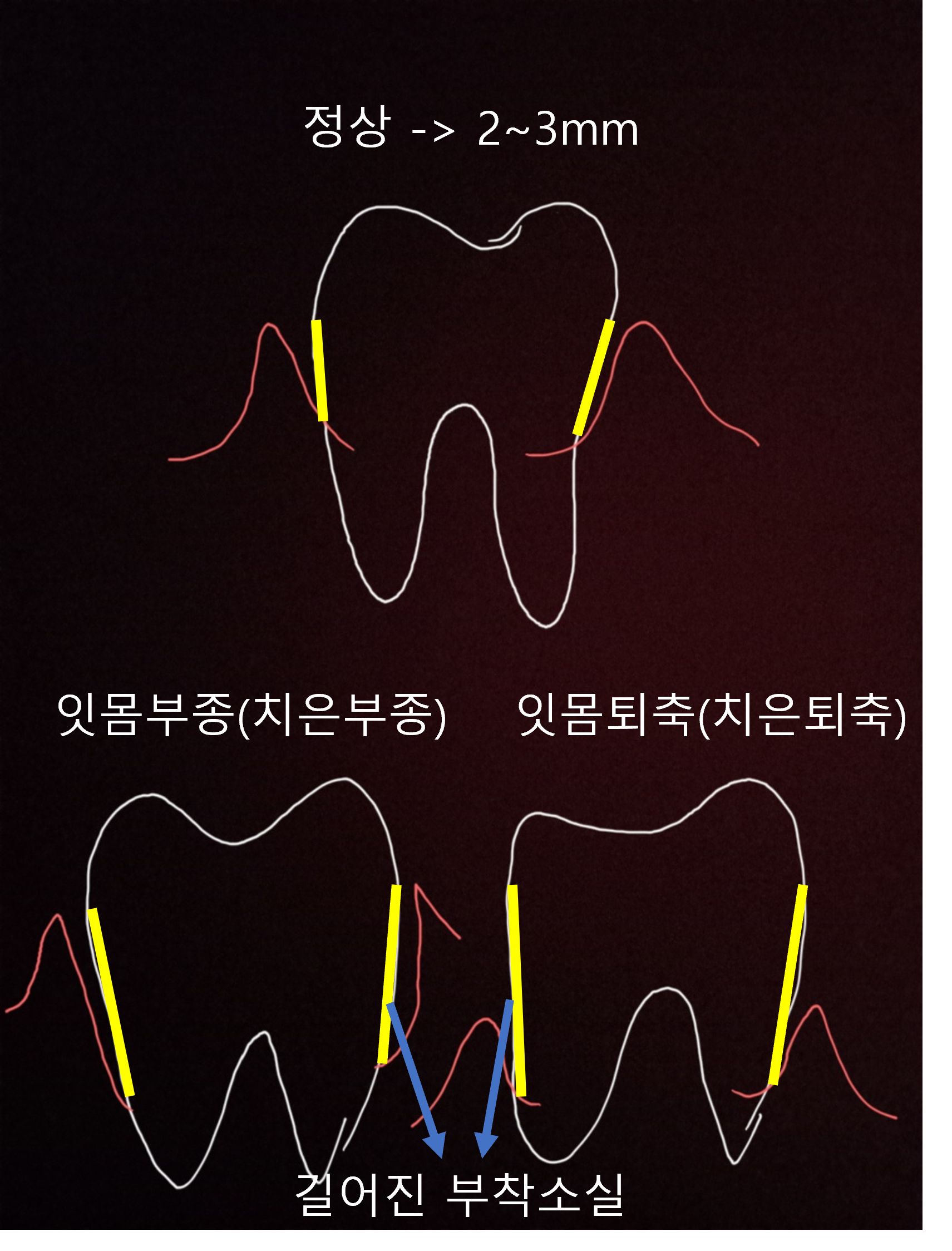 잇몸치료는 잇몸부종이나 잇몸퇴축 등 잇몸병으로 인해 길어진 부착소실을 다시 정상범주로 회복시키는데 목표를 두고 있습니다. 이때 잇몸치료의 도구로써 사용할 수 있는 것 중에 하나가 레이져입니다. 레이져는 치료부위 회복이 좀 더 빠르다는 장점도 있다고 알려져 있습니다.