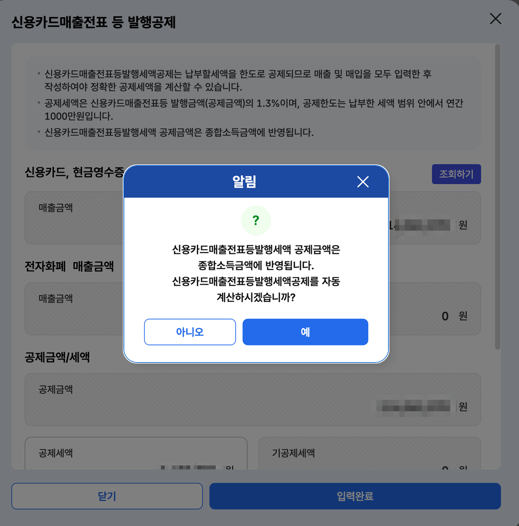 신용카드 매출전표 발행세액공제를 적용할 경우, 종합소득세 신고시 수입금액에 자동으로 반영이 됩니다.