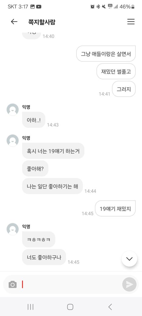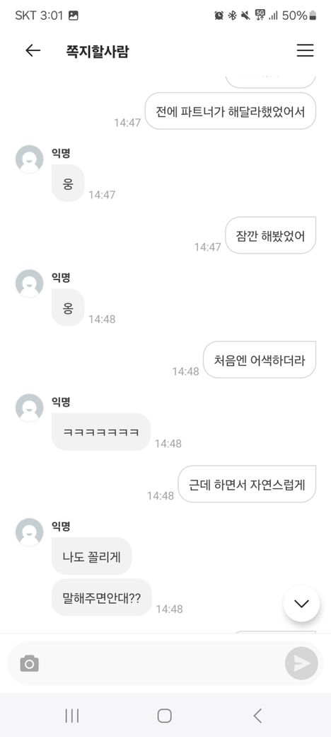 에타에서 익명으로 쪽지하다가 상대방이 야한얘기좋아하는데 흥분되는 막말 해달라고 해서 관계시 하는 그런 거칠고 성적인 말을 했습니다.
