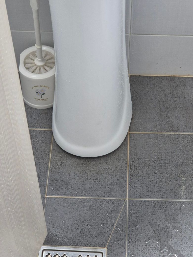 세면대와 바닥사이 실리콘없이 설치되어 있습니다