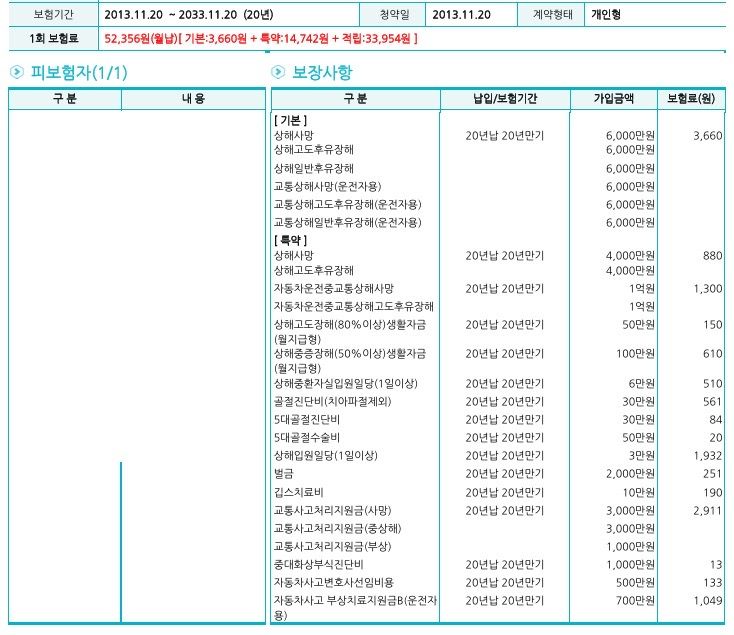 13년도에 가입하신 특약은