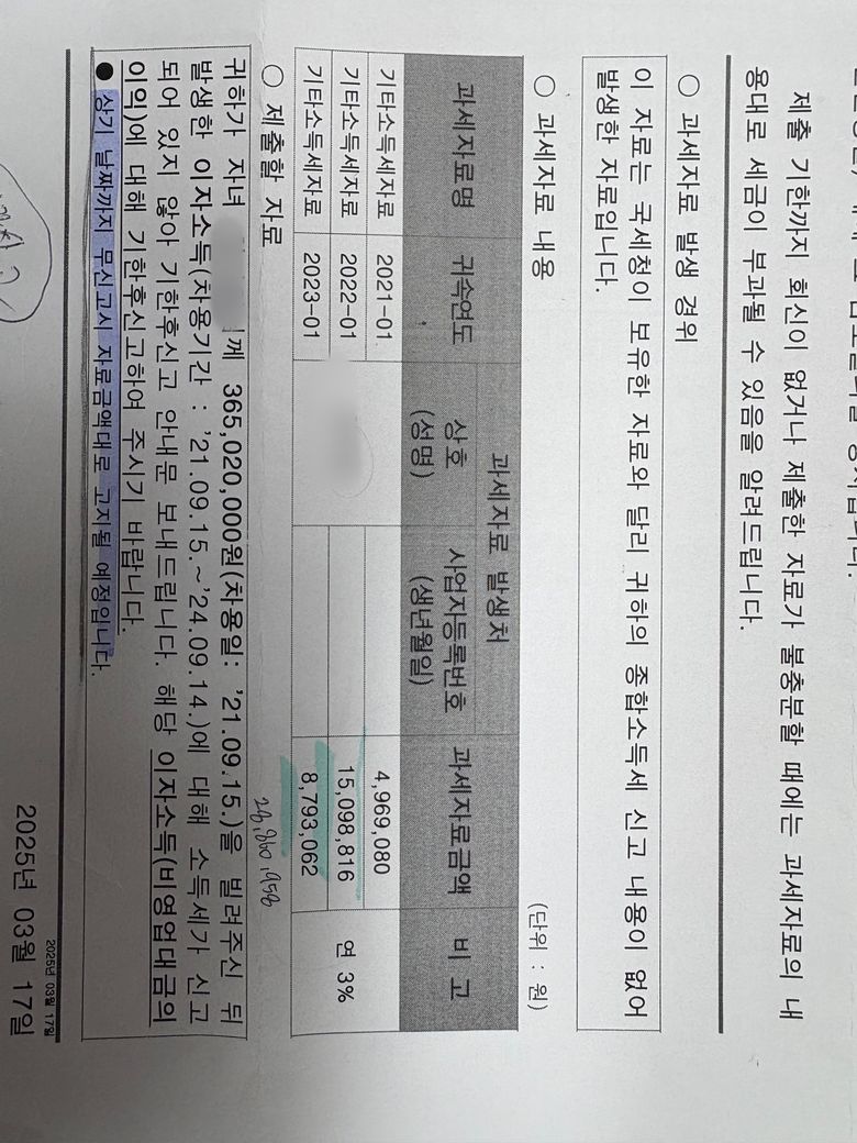 근로소득자여서 연말정산만 진행되었고 해당 소득분은 인지를 못해서 미신고상태라 신고하라고 날라왔습니다.
