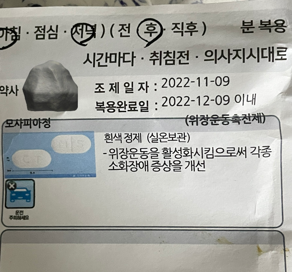 직사광선이 아닌 서랍에 처방전팩 안에 넣어 보관하였고 조제약봉지 안에 알약이 담겨있습니다.