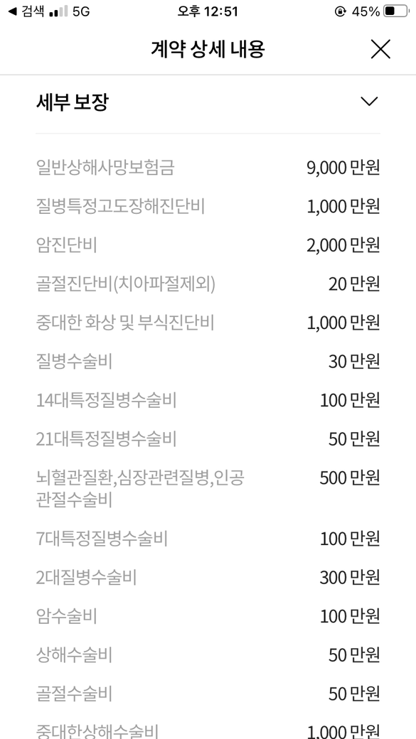 가입한 담보는 나쁘지는 않습니다