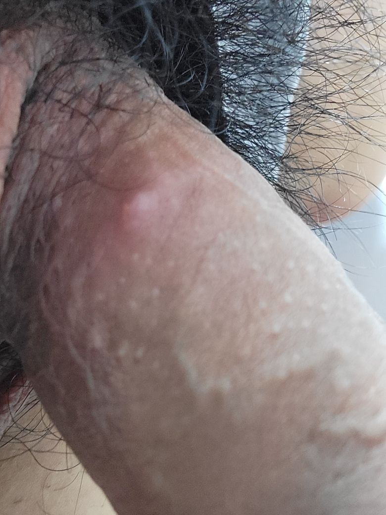 남자 생식기에 뭔가 여드름 비슷한 혹 같은게 났습니다. 평소에는 안 아픈데 만지면 살짝 통증정도만 있습니다.