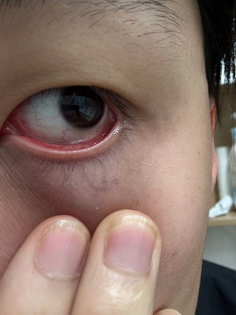 약간 누런 부분도 있고 정상적인 부분도 있어요 아랫쪽은 이게 혹시 황달인가요 그리고 갑자기 일어나니까 눈이 빨간부분이 좀 있어서요