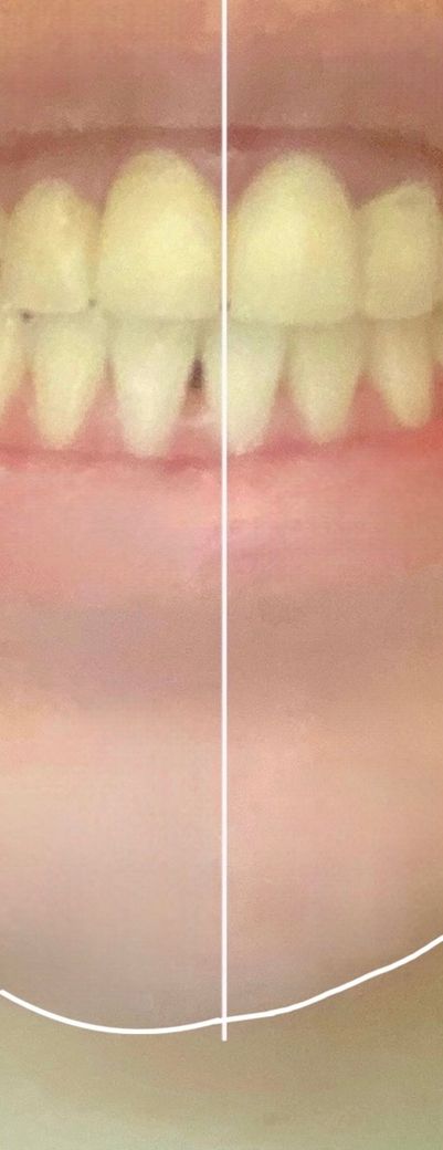 사진과 같이 아랫턱이 약간 틀어져있는 상태입니다. 치아교합도 중심에서 조금 틀어져있습니다.